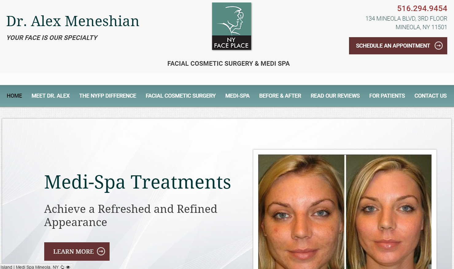 The team at Gazz Consulting has worked to develop a modern design on a responsive web site platform for the facial cosmetic surgery and medi-spa practice of NY Face Place. The site reflects the diverse treatments offered by the practice, including earlobe repair, eyelid surgery, mole removal and more.